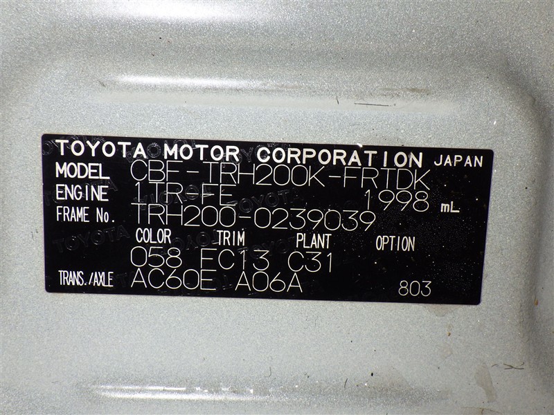 車台番号(下3桁)【039】