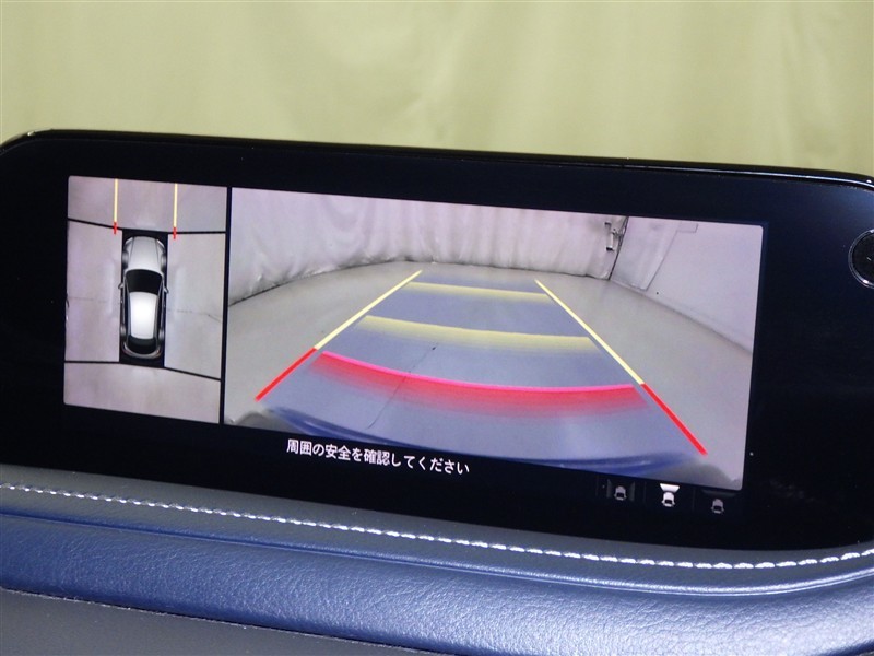パノラミックビューモニターシステムが付いているので車の上から見た映像が確認できますよ。 一目で車両周辺の情報を確認できますが、直接安全をご確認下さい。