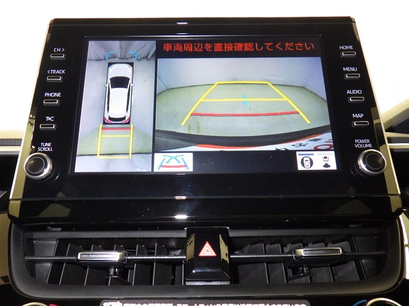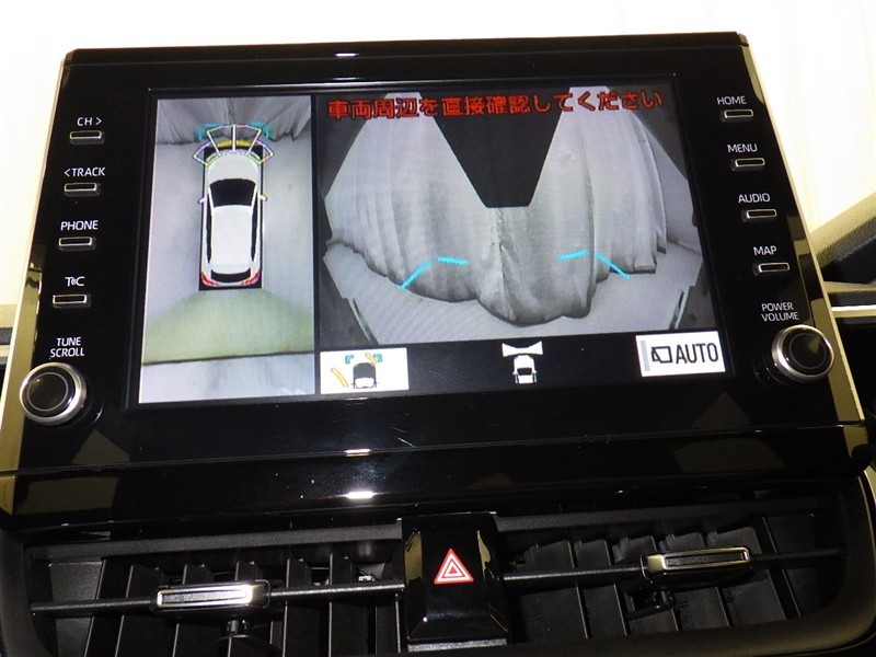 パノラミックビューモニターシステムが付いているので車の上から見た映像が確認できますよ。 一目で車両周辺の情報を確認できますが、直接安全をご確認下さい。