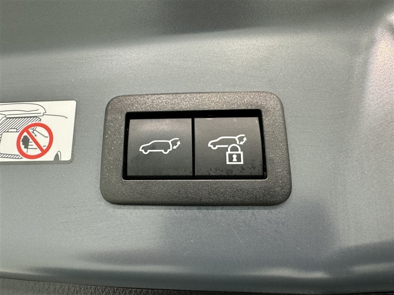 電動式バックドアです。 荷物を持ったままでもボタン一つで自動的に開け閉めできるので便利ですよ。 挟み込み防止機能も付いていますのでお子様の手や荷物を挟み込むのを防いでくれますよ。