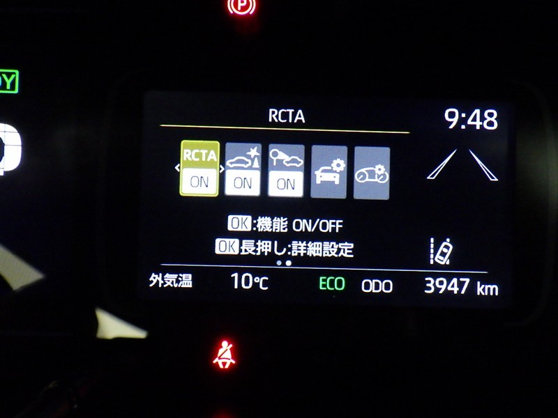 「レーンディパーチャーアラート」道路上の白線(黄線)をセンサーで認識し、車線を逸脱する可能性がある場合、注意喚起します