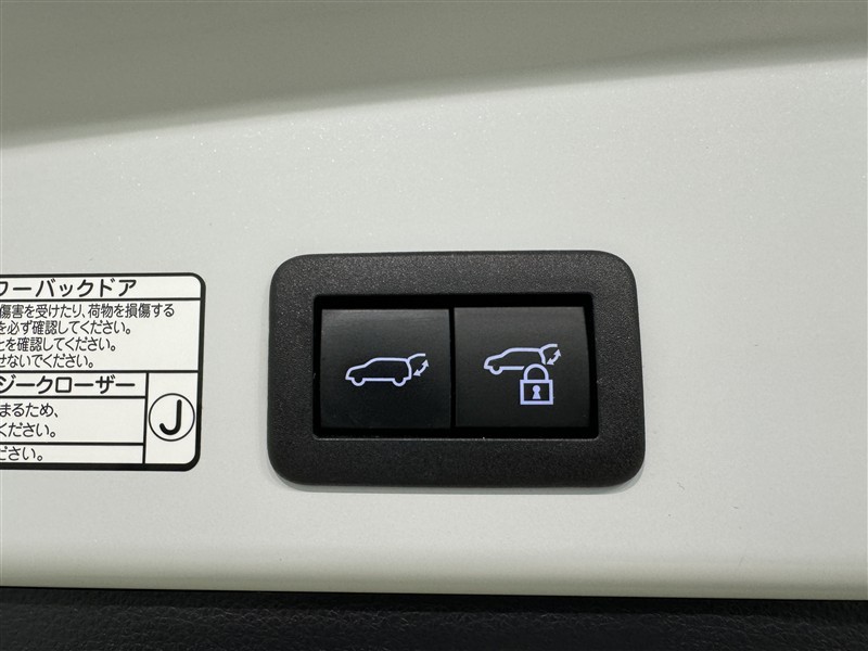 電動式バックドアです。 荷物を持ったままでもボタン一つで自動的に開け閉めできるので便利ですよ。 挟み込み防止機能も付いていますのでお子様の手や荷物を挟み込むのを防いでくれますよ。