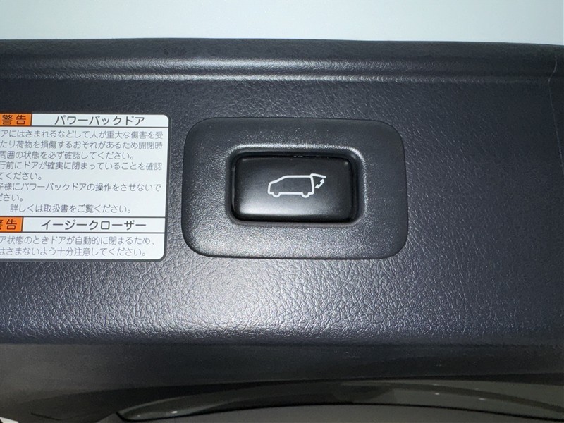 電動式バックドアです。 荷物を持ったままでもボタン一つで自動的に開け閉めできるので便利ですよ。 挟み込み防止機能も付いていますのでお子様の手や荷物を挟み込むのを防いでくれますよ。
