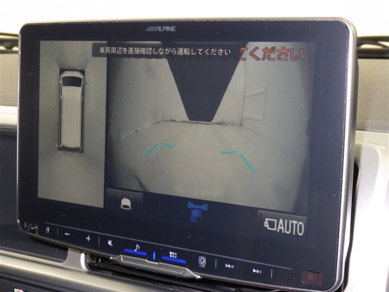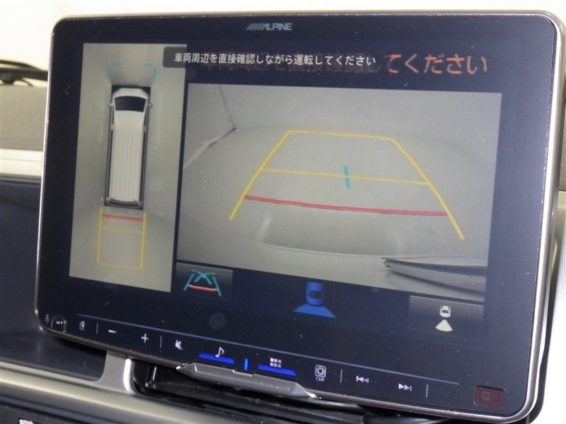 パノラミックビューモニターシステムが付いているので車の上から見た映像が確認できますよ。 一目で車両周辺の情報を確認できますが、直接安全をご確認下さい。
