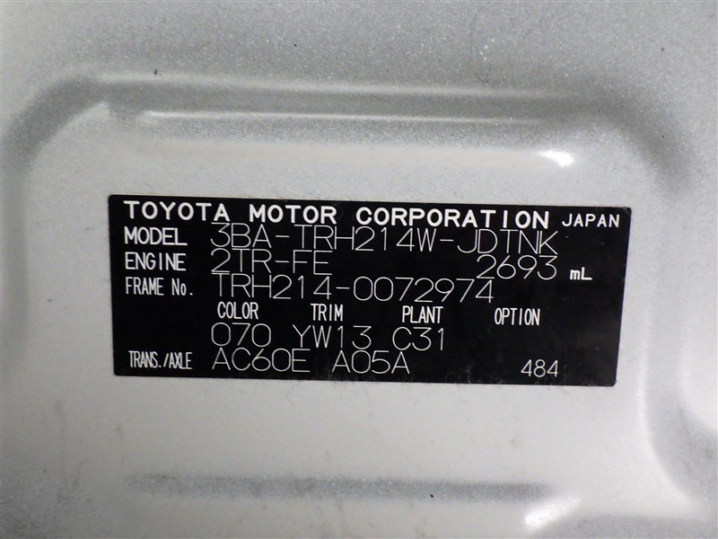 車台番号(下3桁)【974】