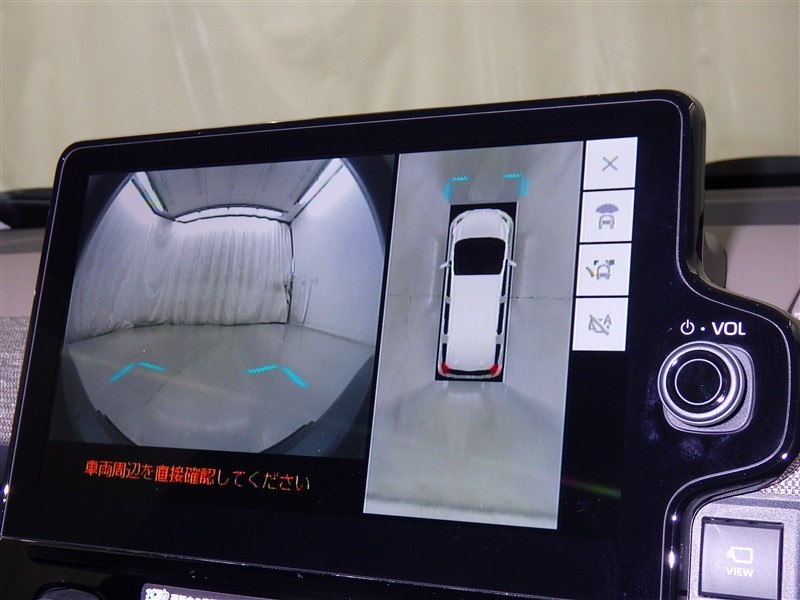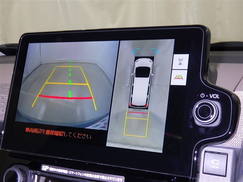 パノラミックビューモニターシステムが付いているので車の上から見た映像が確認できますよ。 一目で車両周辺の情報を確認できますが、直接安全をご確認下さい。