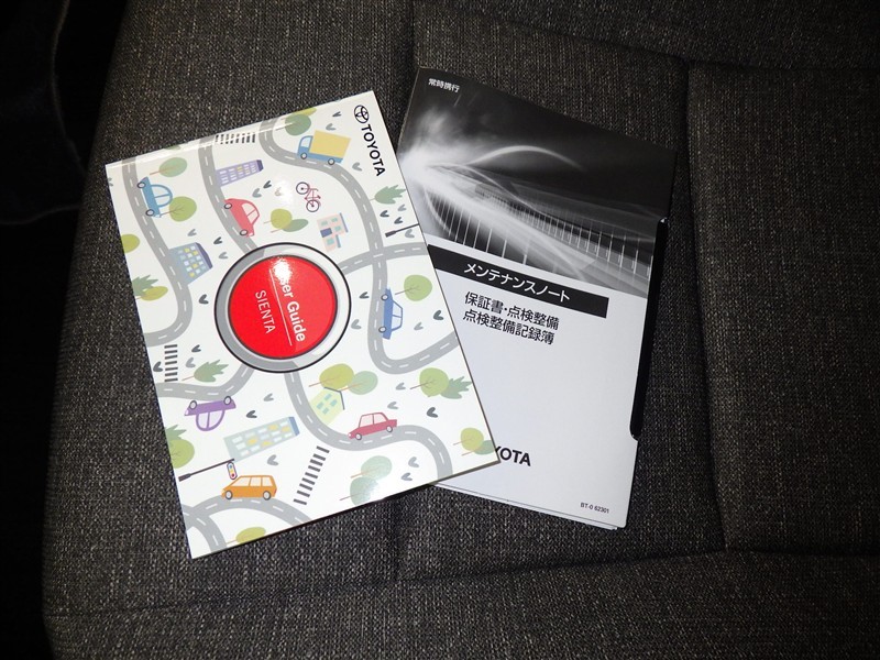 メンテナンスノート、取扱説明書です。 その車の整備記録が事細やかに記録されています。 車が生まれてから今までどのような道を歩んできたのか判るとても重要な物ですよ。