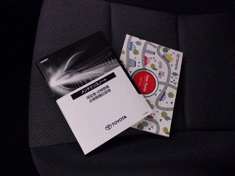 メンテナンスノート、取扱説明書です。 その車の整備記録が事細やかに記録されています。 車が生まれてから今までどのような道を歩んできたのか判るとても重要な物ですよ。