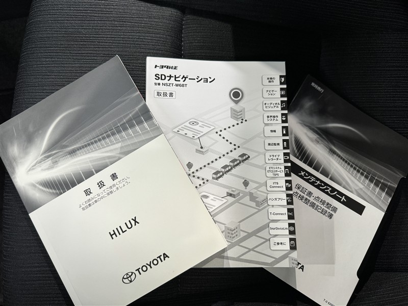 メンテナンスノート、取扱説明書です。 その車の整備記録が事細やかに記録されています。 車が生まれてから今までどのような道を歩んできたのか判るとても重要な物ですよ。