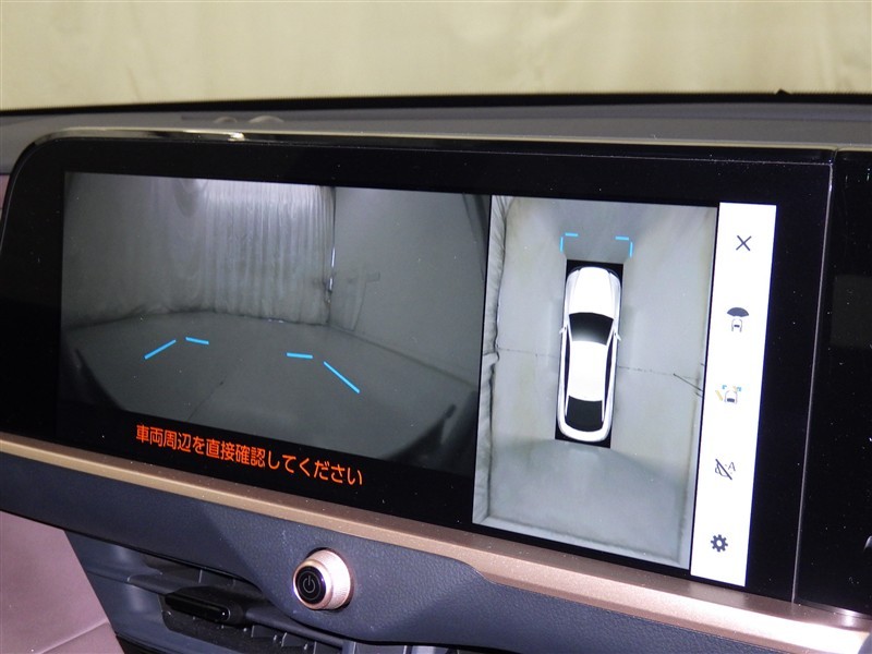 パノラミックビューモニターシステムが付いているので車の上から見た映像が確認できますよ。 一目で車両周辺の情報を確認できますが、直接安全をご確認下さい。