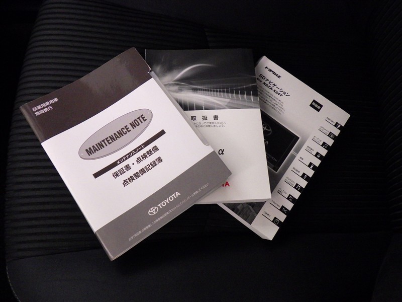 メンテナンスノート、取扱説明書です。 その車の整備記録が事細やかに記録されています。 車が生まれてから今までどのような道を歩んできたのか判るとても重要な物ですよ。