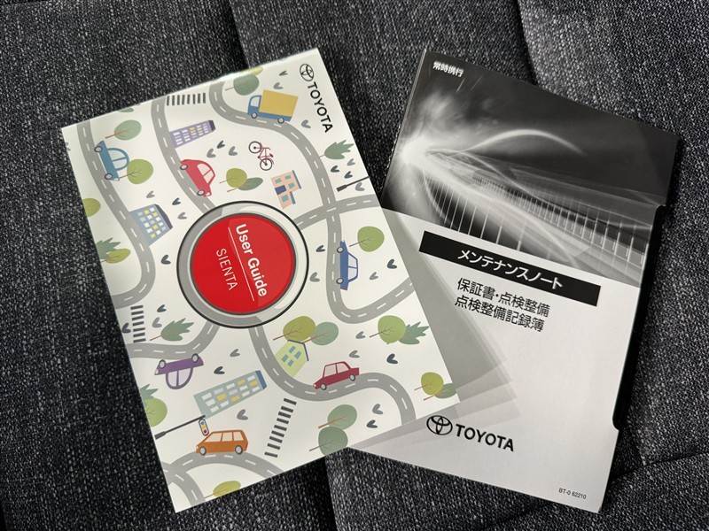 メンテナンスノート、取扱説明書です。 その車の整備記録が事細やかに記録されています。 車が生まれてから今までどのような道を歩んできたのか判るとても重要な物ですよ。
