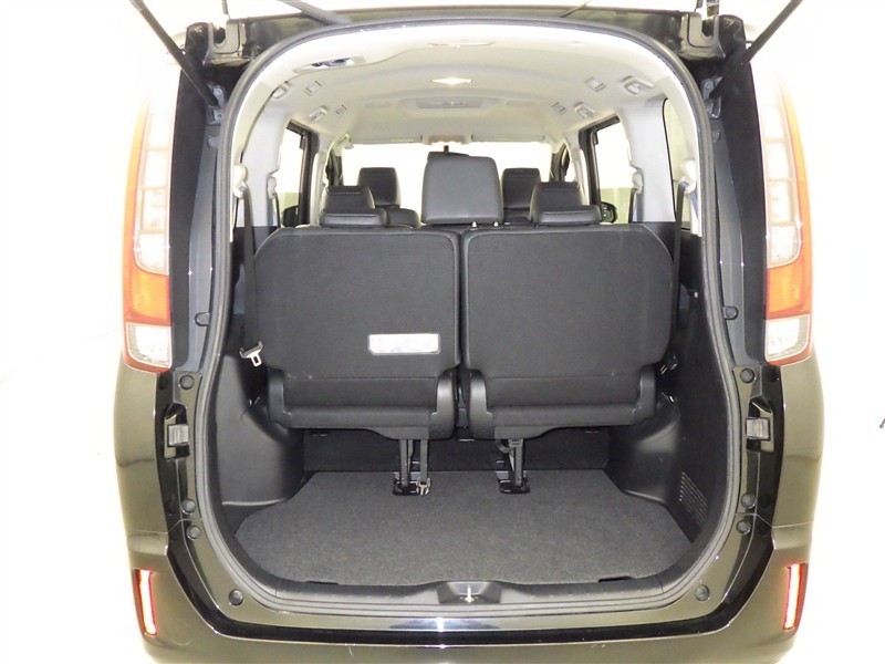 3列目シートは跳ね上げ式で折りたたみ可能です。キャンプ用品など大きな荷物もばっちり収納可能です!