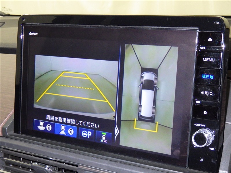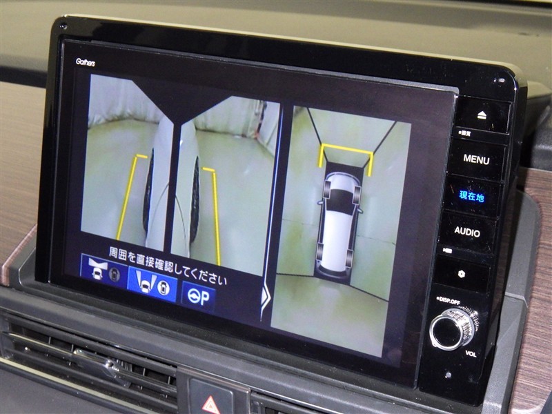パノラミックビューモニターシステムが付いているので車の上から見た映像が確認できますよ。 一目で車両周辺の情報を確認できますが、直接安全をご確認下さい。