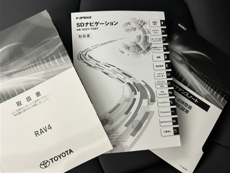 メンテナンスノート、取扱説明書です。 その車の整備記録が事細やかに記録されています。 車が生まれてから今までどのような道を歩んできたのか判るとても重要な物ですよ。