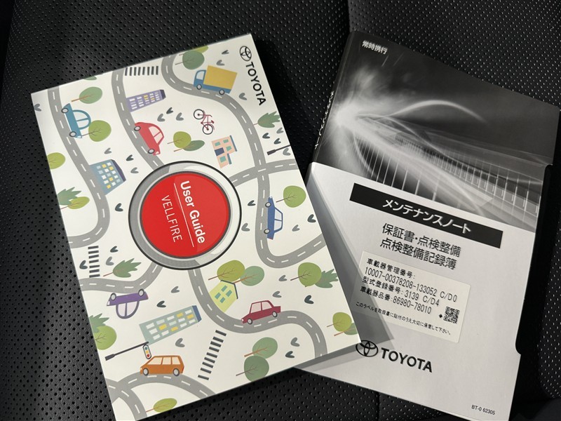 メンテナンスノート、取扱説明書ですね。 車の情報が凝縮されています。 車の整備記録が記載されている大事な物ですよ。