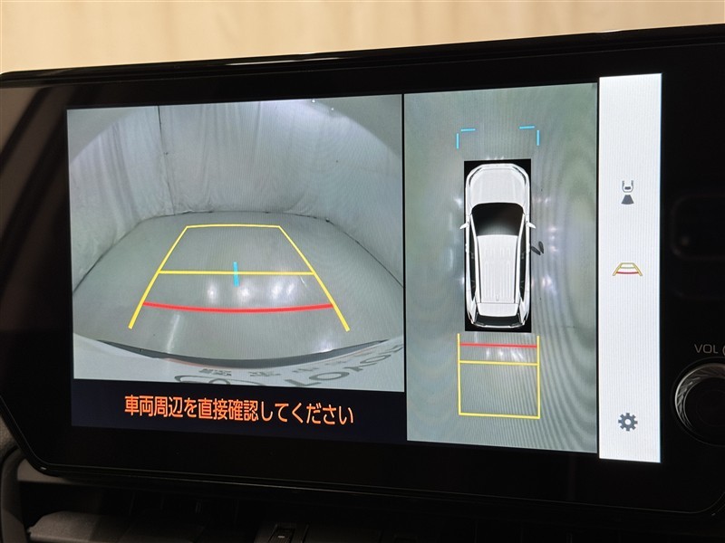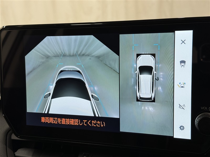 パノラミックビューモニターシステムが付いているので車の上から見た映像が確認できますよ。 一目で車両周辺の情報を確認できますが、直接安全をご確認下さい。