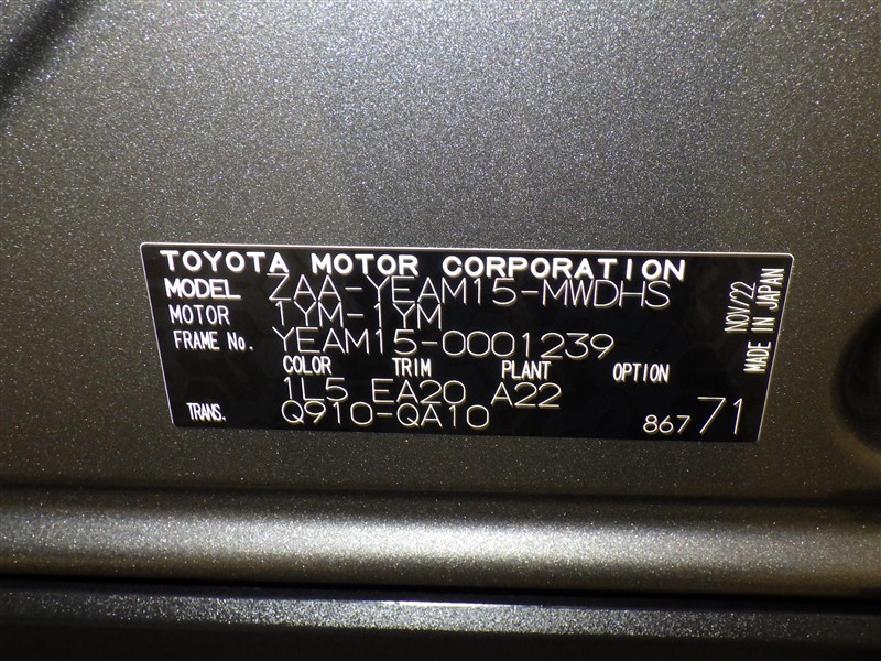 車両ナンバー :1111122222