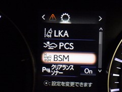 車線変更時などに、ドアミラーでは確認しにくい後側方エリア(ブラインドスポット)に存在する車両をレーダーで検知。警告サインをドアミラー等に表示することで、運転者に注意喚起する機能。