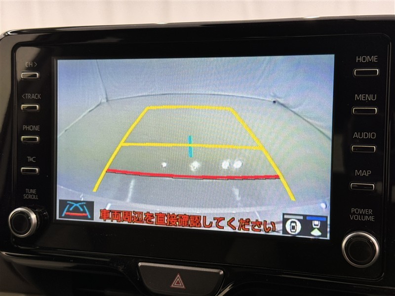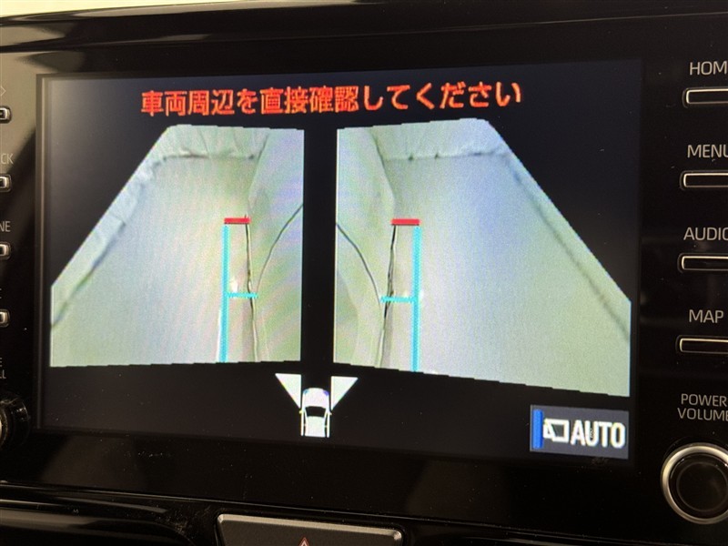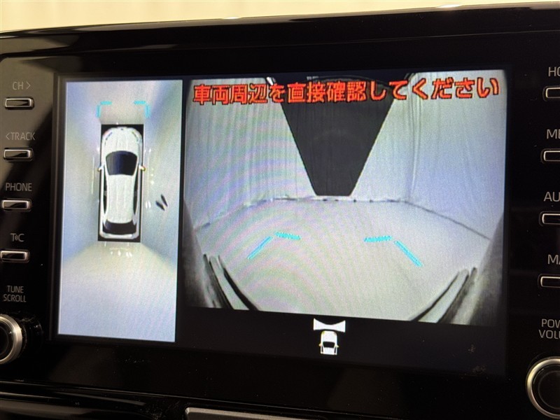 パノラミックビューモニターシステムが付いているので車の上から見た映像が確認できますよ。 一目で車両周辺の情報を確認できますが、直接安全をご確認下さい。