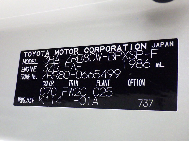 車両ナンバー: