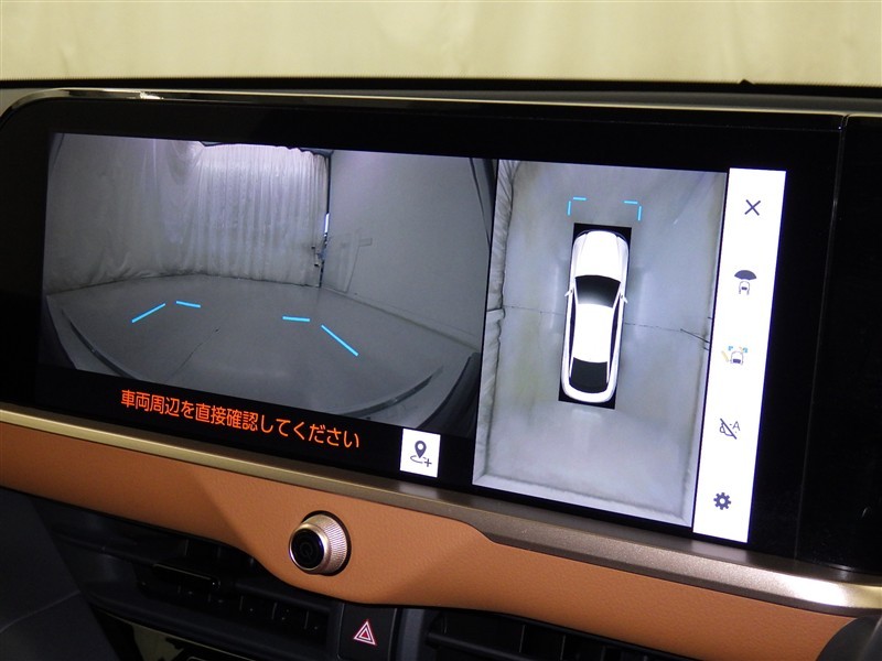 パノラミックビューモニターシステムが付いているので車の上から見た映像が確認できますよ。 一目で車両周辺の情報を確認できますが、直接安全をご確認下さい。