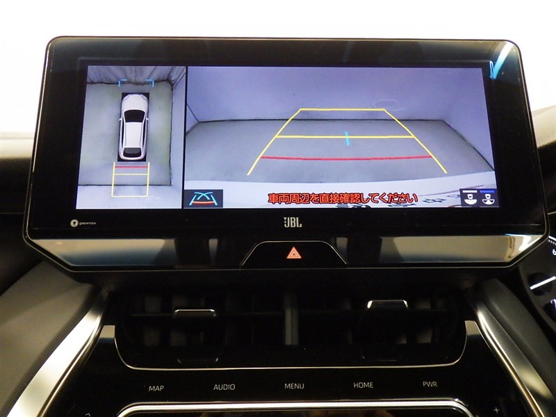 パノラミックビューモニターシステムが付いているので車の上から見た映像が確認できますよ。 一目で車両周辺の情報を確認できますが、直接安全をご確認下さい。