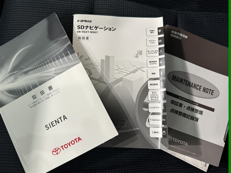 メンテナンスノート、取扱説明書ですね。 車の情報が凝縮されています。 車の整備記録が記載されている大事な物ですよ。