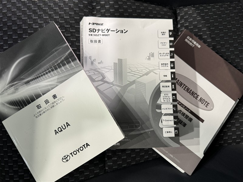 メンテナンスノート、取扱説明書ですね。 車の情報が凝縮されています。 車の整備記録が記載されている大事な物ですよ。