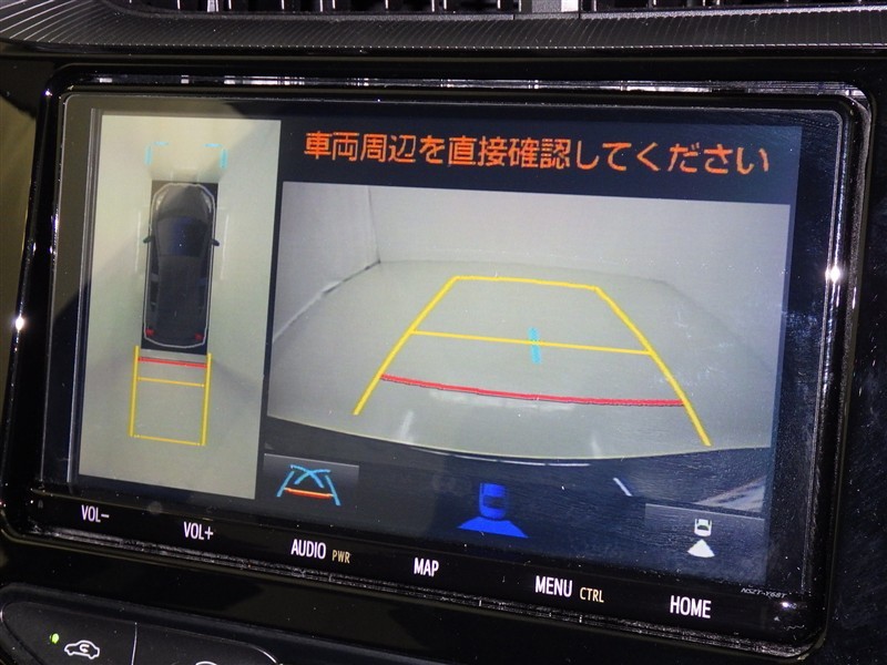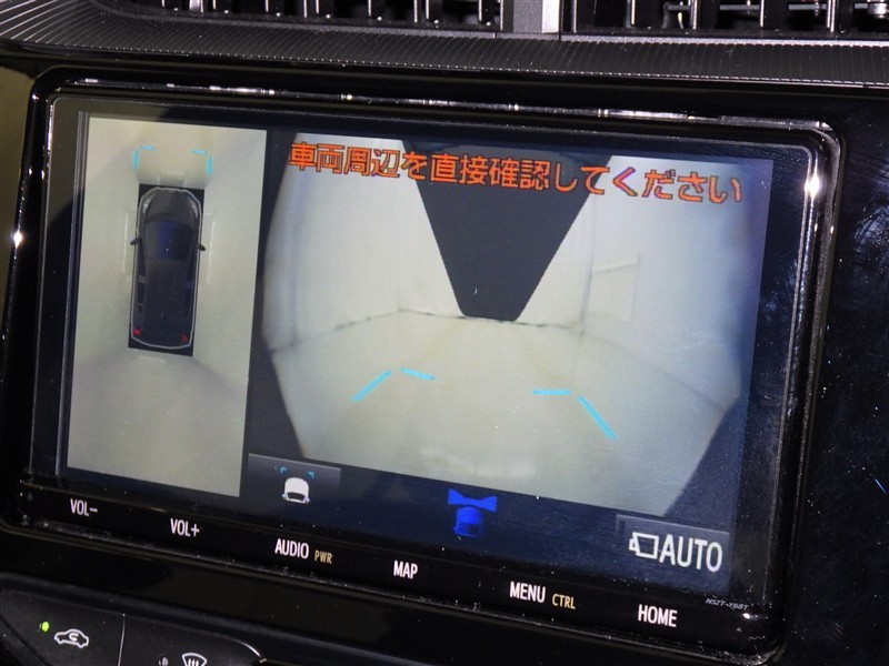 パノラミックビューモニターシステムが付いているので車の上から見た映像が確認できますよ。 一目で車両周辺の情報を確認できますが、直接安全をご確認下さい。