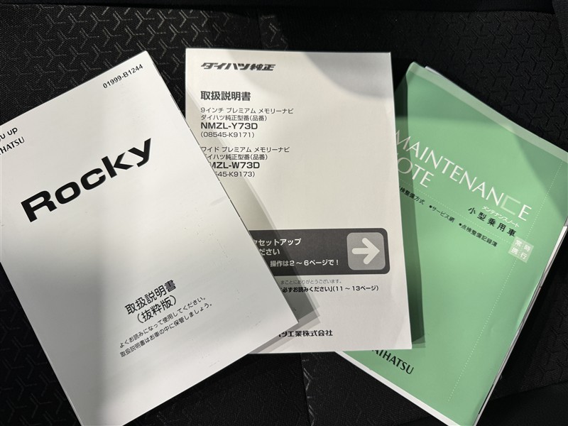 メンテナンスノート、取扱説明書ですね。 車の情報が凝縮されています。 車の整備記録が記載されている大事な物ですよ。
