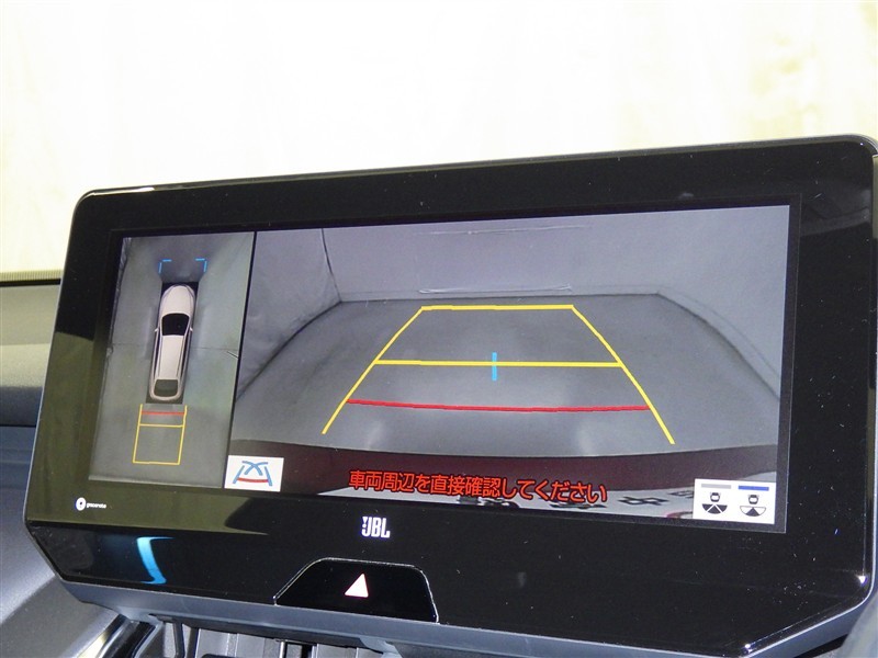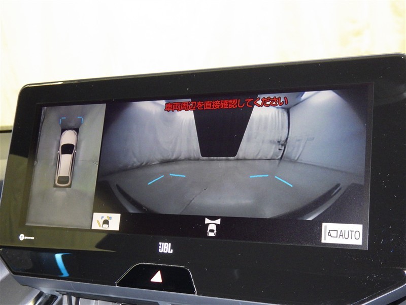 パノラミックビューモニターシステムが付いているので車の上から見た映像が確認できますよ。 一目で車両周辺の情報を確認できますが、直接安全をご確認下さい。