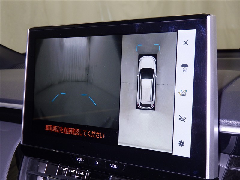 パノラミックビューモニターシステムが付いているので車の上から見た映像が確認できますよ。 一目で車両周辺の情報を確認できますが、直接安全をご確認下さい。