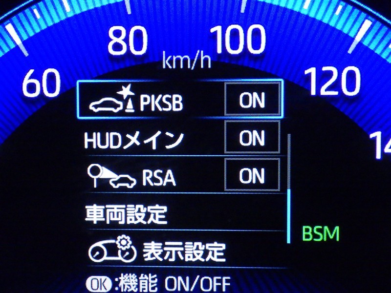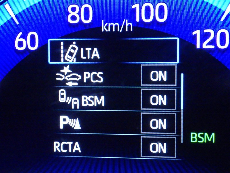 車線変更時などに、ドアミラーでは確認しにくい後側方エリア(ブラインドスポット)に存在する車両をレーダーで検知。警告サインをドアミラー等に表示することで、運転者に注意喚起する機能。