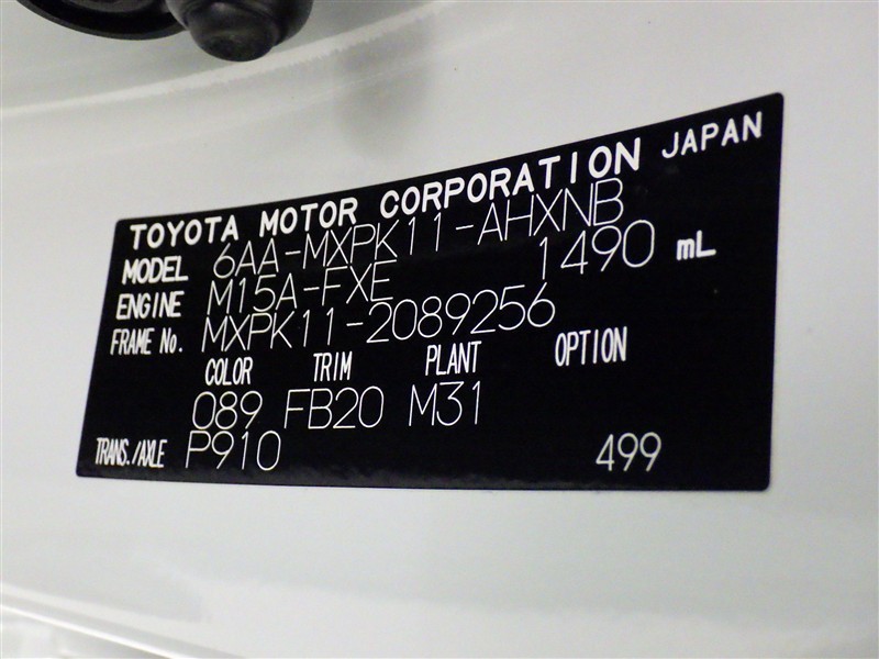 車両ナンバー: