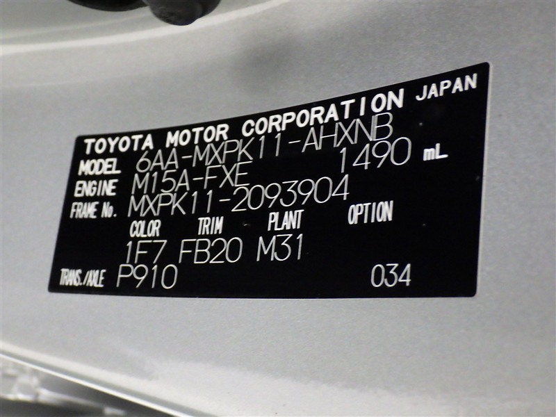 車台番号(下3桁)【904】