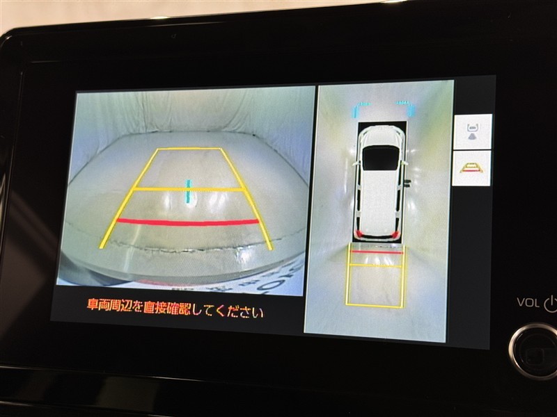 パノラミックビューモニターシステムが付いているので車の上から見た映像が確認できますよ。 一目で車両周辺の情報を確認できますが、直接安全をご確認下さい。