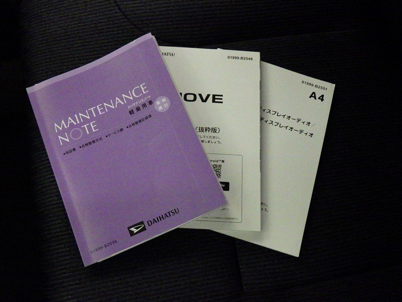 メンテナンスノート、取扱説明書です。 その車の整備記録が事細やかに記録されています。 車が生まれてから今までどのような道を歩んできたのか判るとても重要な物ですよ。