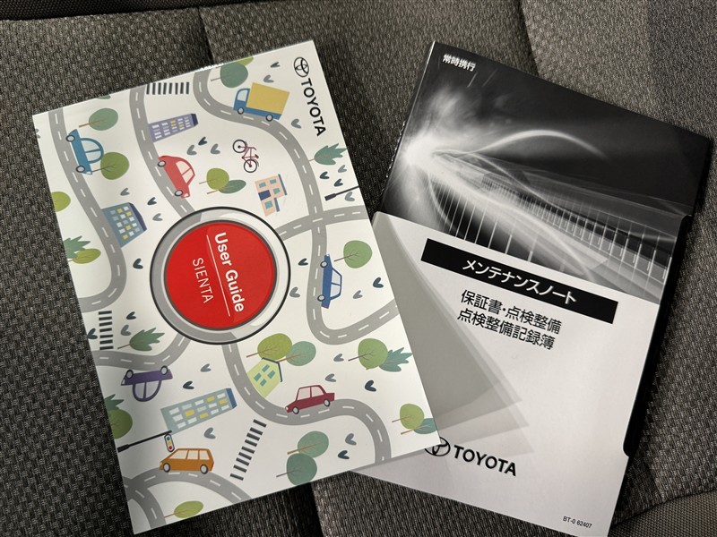 メンテナンスノート、取扱説明書です。 その車の整備記録が事細やかに記録されています。 車が生まれてから今までどのような道を歩んできたのか判るとても重要な物ですよ。