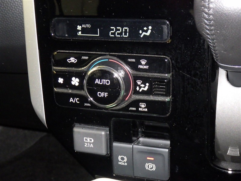 オートエアコン付きなので一度、気温を設定すれば自動的に過ごし易い温度に調整してくれますよ。 車内をいつでも快適空間にしてくれます。