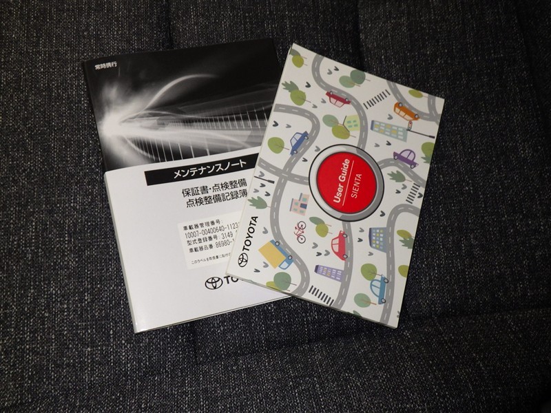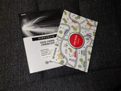 メンテナンスノート、取扱説明書ですね。 車の情報が凝縮されています。 車の整備記録が記載されている大事な物ですよ。