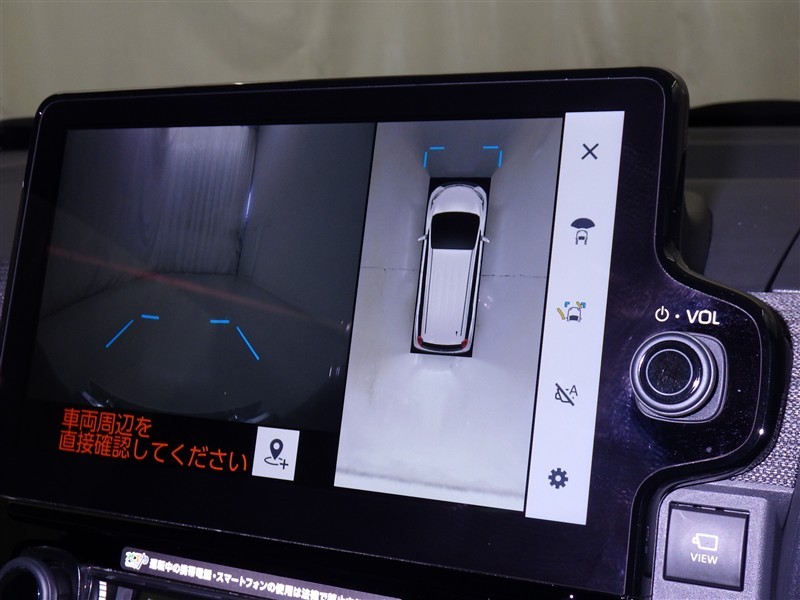 パノラミックビューモニターシステムが付いているので車の上から見た映像が確認できますよ。 一目で車両周辺の情報を確認できますが、直接安全をご確認下さい。