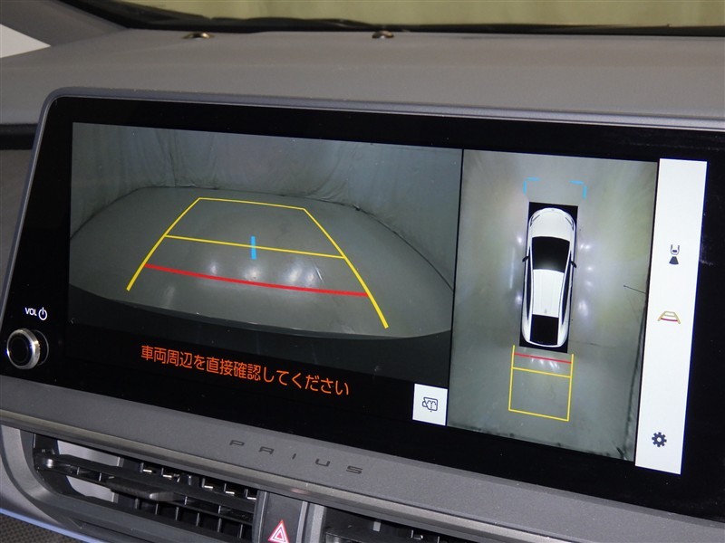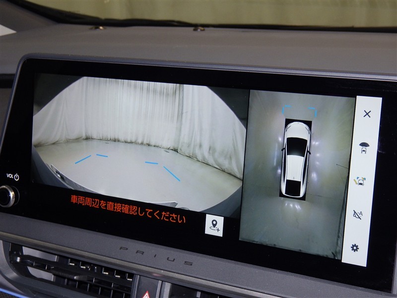 パノラミックビューモニターシステムが付いているので車の上から見た映像が確認できますよ。 一目で車両周辺の情報を確認できますが、直接安全をご確認下さい。