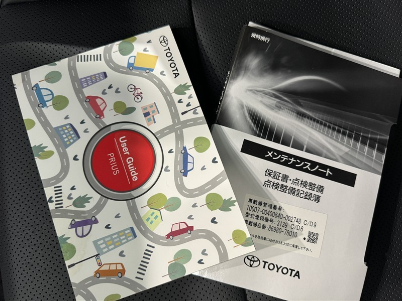 メンテナンスノート、取扱説明書です。 その車の整備記録が事細やかに記録されています。 車が生まれてから今までどのような道を歩んできたのか判るとても重要な物ですよ。