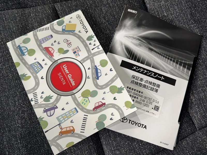 メンテナンスノート、取扱説明書です。 その車の整備記録が事細やかに記録されています。 車が生まれてから今までどのような道を歩んできたのか判るとても重要な物ですよ。
