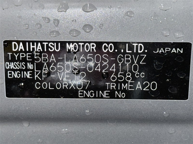 車両ナンバー: