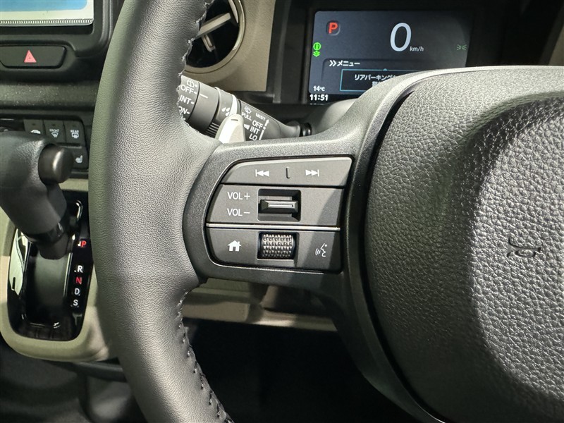 ステアリングスイッチ付き。前方から目を離すことなく操作することが可能です。