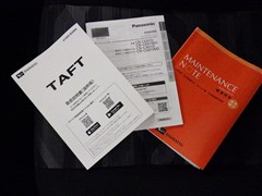メンテナンスノート、取扱説明書ですね。 車の情報が凝縮されています。 車の整備記録が記載されている大事な物ですよ。