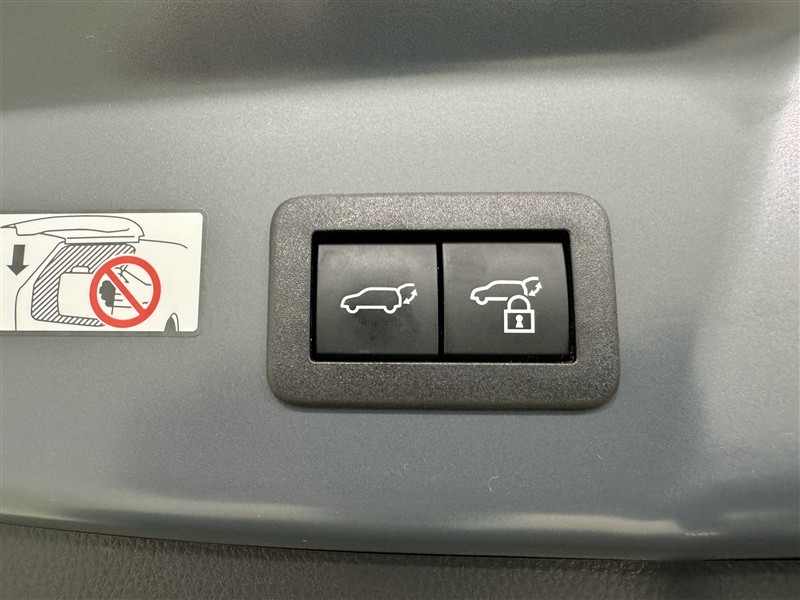電動式バックドアです。 荷物を持ったままでもボタン一つで自動的に開け閉めできるので便利ですよ。 挟み込み防止機能も付いていますのでお子様の手や荷物を挟み込むのを防いでくれますよ。