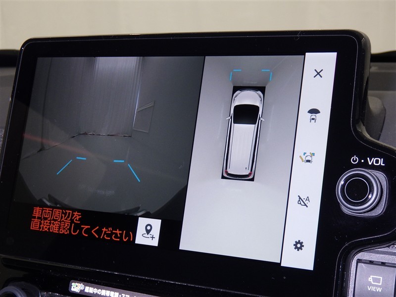 パノラミックビューモニターシステムが付いているので車の上から見た映像が確認できますよ。 一目で車両周辺の情報を確認できますが、直接安全をご確認下さい。